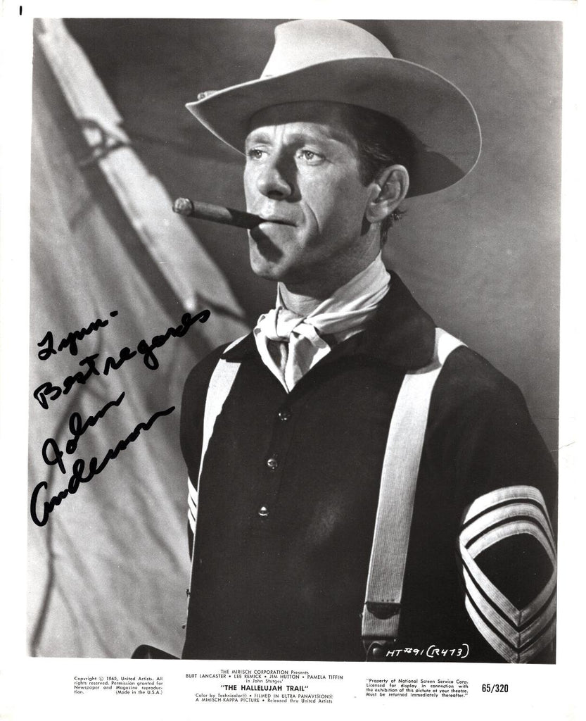 Rare vintage 8x10-inch black and white portrait of the GREAT character actor in 1965's The Hallelujah Trail, boldly signed and inscribed in black felt-tip marker in his later years. In good condition and just the second autographed photo of him we have ever encountered.
