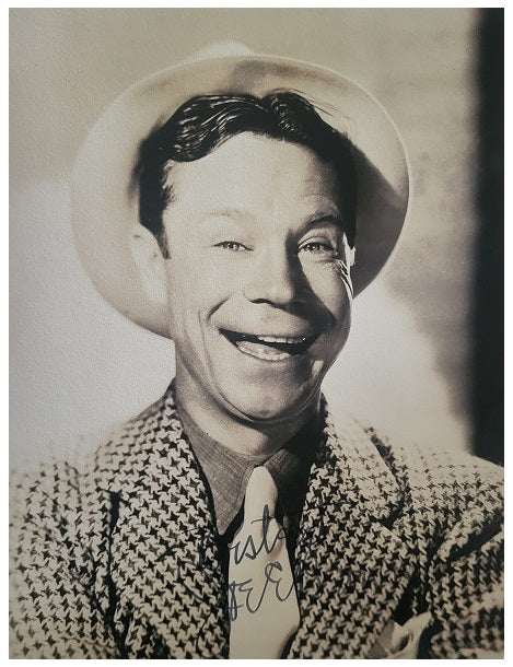 Terrific vintage 8x10-inch black and white comic portrait of the goofy-looking character actor, boldly signed in black fountain pen in the 1930s. In good condition for its age.