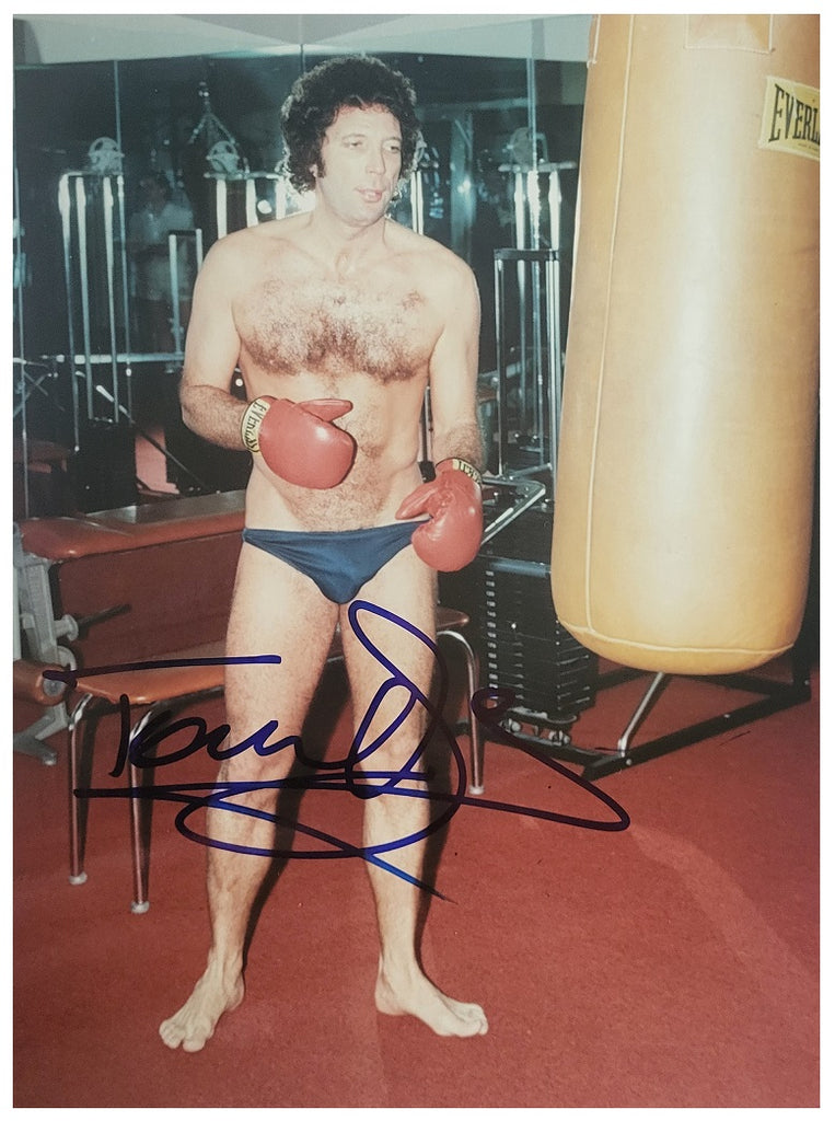 From the massive collection of a busy New York City-based autograph hound comes this choice 8x10-inch color portrait of the wildly popular singer, shown shirtless in boxing attire, boldly signed in blue felt-tip marker in-person in the early 1990s. In good condition.