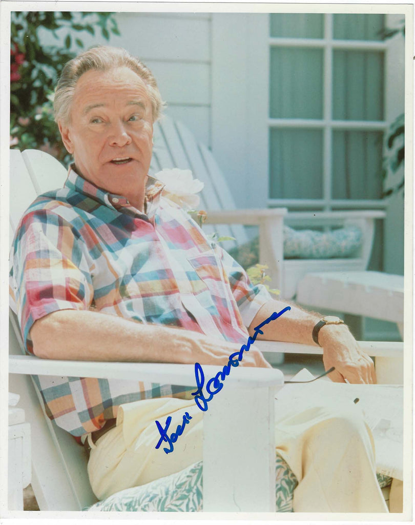Nice 10x8-inch color glossy portrait, boldly signed in blue Sharpie marker in-person for a busy New York City-based autograph hound in the 1990s. In good condition. Lovable "every man" actor Jack Lemmon won two Oscars, for Mister Roberts (1955) and Save the Tiger (1973), and was nominated a whopping six more times, for Some Like It Hot (1960), The Apartment (1960), Days of Wine and Roses (1962), The China Syndrome (1979), Tribute (1980), and Missing (1982), each one a Hollywood classic. He was elsewhere unforgettable in Bell Book and Candle (1958), Irma La Douce (1963), Under the Yum Yum Tree (1963), How to Murder Your Wife (1965), The Fortune Cookie (1966), The Odd Couple (1968), The April Fools (1969), The Out of Towners (1970), The Prisoner of Second Avenue (1975), Airport '77 (1977), Mass Appeal (1991), JFK (1991), Glengarry Glenn Ross (1992), Grumpy Old Men (1993), Grumpier Old Men (1995), and Tuesdays with Morrie (1999).