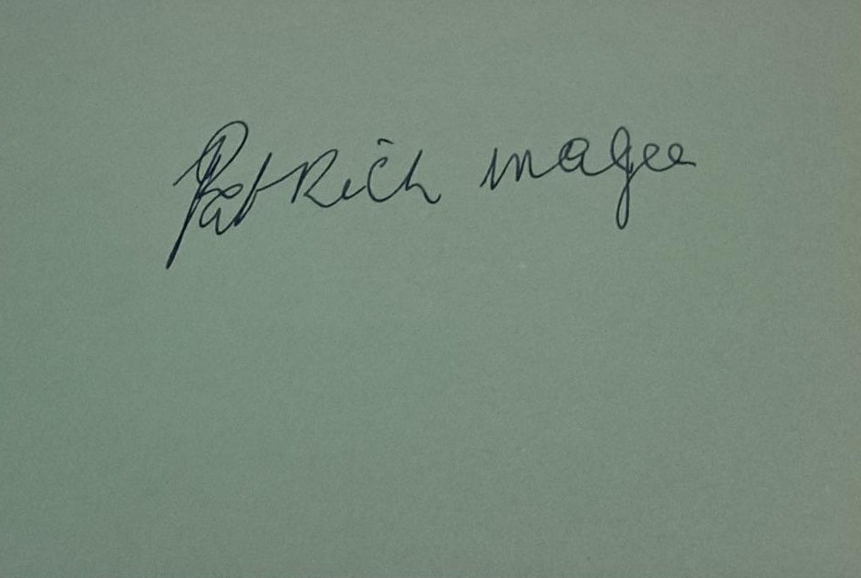 IMPOSSIBLE to find blue fountain pen signature on a 4x6-inch green card, acquired in-person by inveterate autograph hound John Virzi in the 1970s. In good condition. Note that the image of the star shown here alongside the scan of the autograph is not included. This is just the second autograph we have ever encountered of the Northern Irish character actor who played Mr. Alexander-- the writer whose wife is ruthlessly assaulted by the Droogs-- in Stanley Kubrick's A Clockwork Orange (1971). He was elsewhere noteworthy in a mixed assortment of dramas, and horror and sci-fi flicks, including Dementia 13 (1963), Seance on a Wet Afternoon (1964), The Masque of the Red Death (1964), The Skull (1965), Die, Monster, Die! (1965), Portrait in Terror (1965), Tales from the Crypt (1972), Luther (1974), Barry Lyndon (1975), Chariots of Fire (1971), The Monster Club (1971), The Black Cat (1981), and Blood of Dr. Jekyll (1981). He died at 60, having left behind very few examples of an autograph many a collector has come to want.
