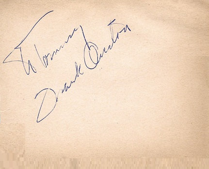 Exceedingly rare vintage inscribed blue ballpoint pen signature on a 4x6-inch tan autograph album page, acquired in-person in the 1950s. In good condition for its age and just the third we have ever seen in nearly four decades. Authoritative television and film actor Frank Overton, who died of a heart attack at just 49, is remembered for playing Sheriff Heck Tate in To Kill a Mockingbird (1962), and for appearing on classic episodes of "The Twilight Zone" (1959, 1963) and "Star Trek" (1967).