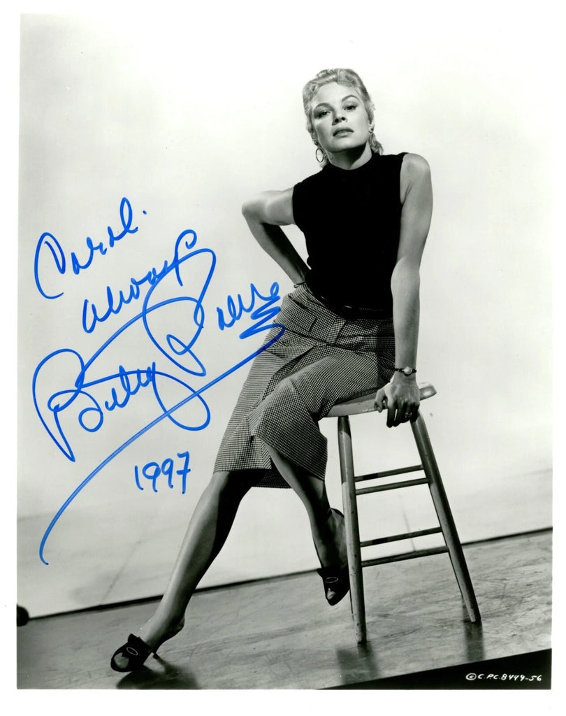 Sexy vintage 8x10-inch black and white portrait in her prime, boldly signed and inscribed in blue felt-tip marker in-person at a film convention appearance in 1997. In good condition. Lovely Betsy Palmer, a popular starlet during Hollywood's Golden Age, gained new fame in her later years, as Jason Vorhees' mother in the horror classic Friday the 13th (1980).