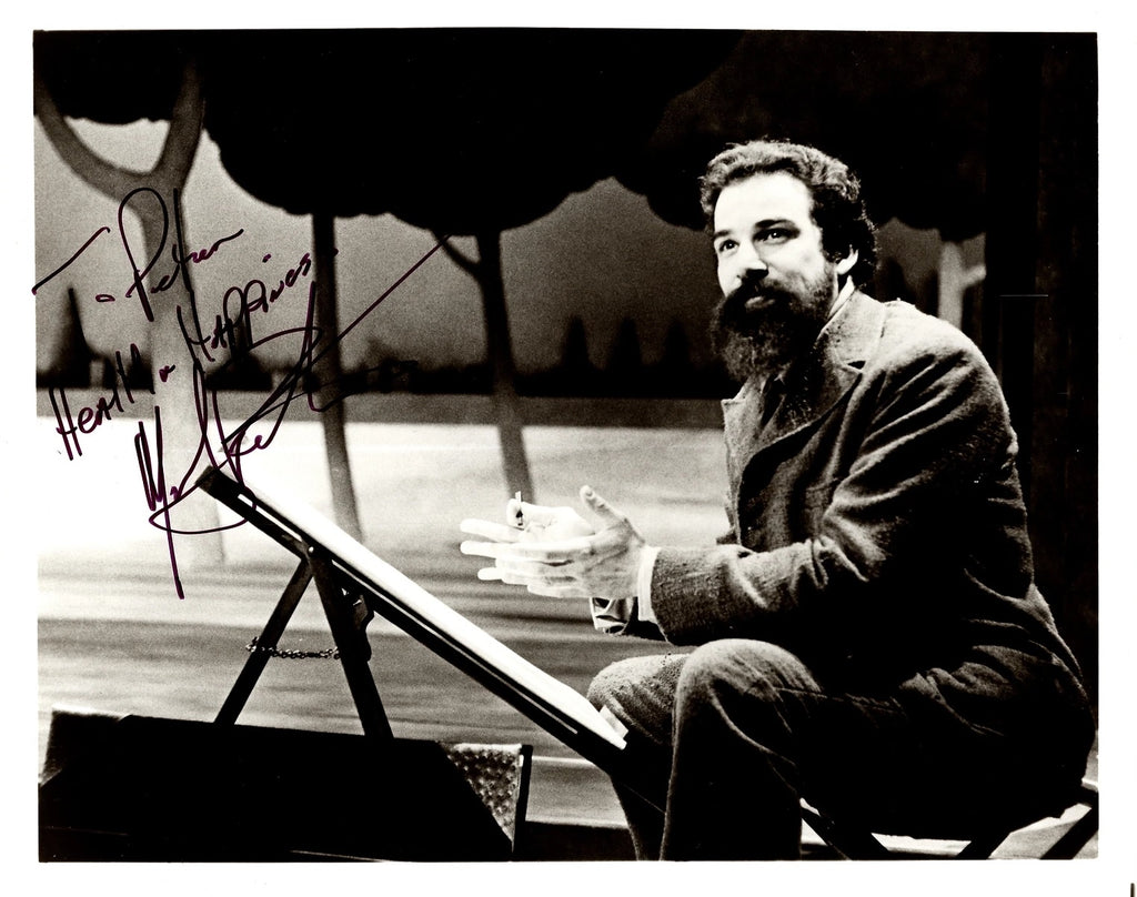 VERY tough to attain vintage 10x8-inch black and white portrait of the handsome stage and screen actor and singer as George Seurat in Stephen Sondheim's classic Broadway musical "Sunday in the Park with George" (1986), shown finishing his hat, boldly signed in black felt-tip pen for a noted collector in the period of the show. In good condition.