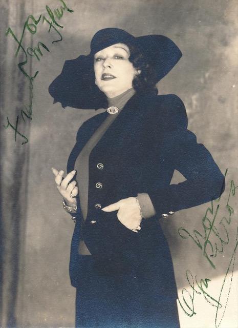 Quite scarce vintage 3.5 x 4.75-inch sepia-tone portrait of the silent movie queen, boldly signed and inscribed to inveterate autograph collector Frank M. Flack in the early 1950s. In good condition.