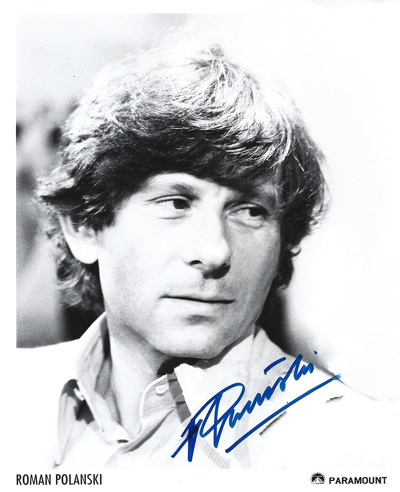 Scarce 8x10-inch black and white youthful portrait, boldly signed in blue felt-tip marker in around 2001. In good condition. Oscar-winning Polish-born director Roman Polanski is remembered for important films like Repulsion (1965), horror's Rosemary's Baby (1969), Chinatown (1974), and The Pianist (2002), as well as for his stormy personal life. In 1969, his breathtakingly beautiful wife, actress Sharon Tate, was brutally murdered and mutilated by members of the Mason family.