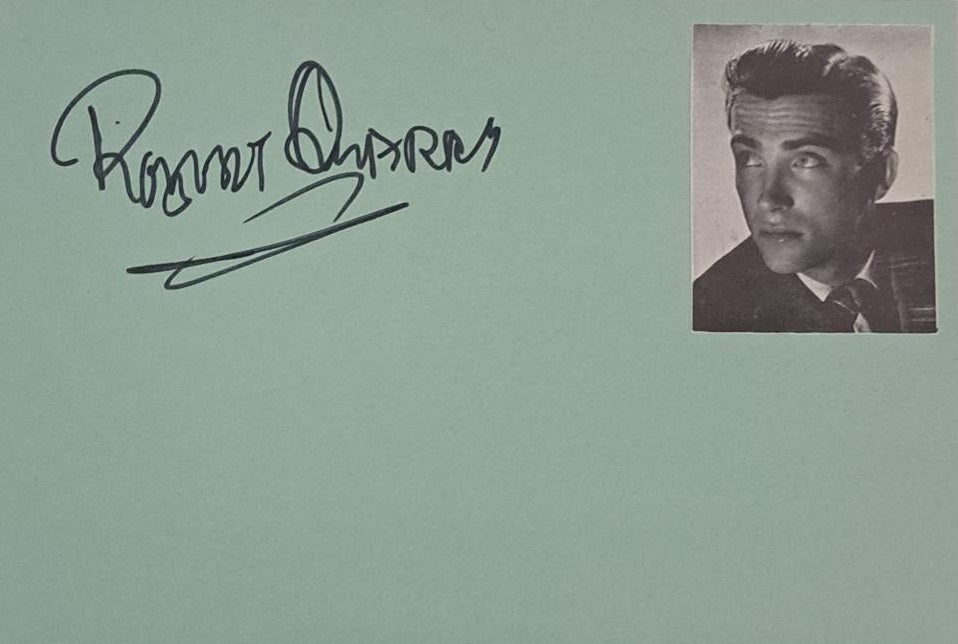 Tough to find vintage black felt-tip pen signature on a 4x6-inch light green card, acquired in-person by unstoppable autograph hound John Virzi in the 1980s and decorated with a small magazine image. In good condition. Actor Robert Quarry was a stalwart of B-grade horror movies, many of them cult classics, including the title role in Count Yorga, Vampire (1970) and The Return of Count Yorga (1971), and Dr. Phibes Rises Again (1972).