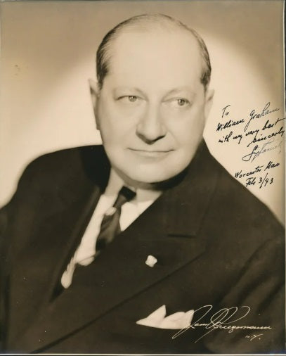 Rare vintage 8x10-inch black and white portrait of the great composer of musicals and operettas, boldly signed and inscribed in 1943. In good condition, with the borders partially trimmed for framing purposes.
