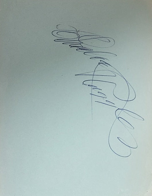 Uncommon vintage blue ballpoint pen signature on a 4x6-inch light blue autograph album page, acquired in-person in the early 1950s. In fine condition for its age and suitable for matting with a favorite photograph. The elder brother of director Wesley Ruggles, Charlie Ruggles was a beloved comic talent in film and on television for over five decades. He sputtered, stumbled and clucked as meek, easily flustered men in classic films like Trouble in Paradise (1932), Ruggles of Red Gap (1935), Bringing Up Baby (1938), and A Stolen Life (1946). On television, he went uncredited as the voice of Aesop in the "Aesop and Son" segment of "The Rocky and Bullwinkle Show" (1959-1964); played Lowell Farquhar, the father of Mrs. Drysdale and Granny's unwilling love object on "The Beverly Hillbillies" (1962-1971); and portrayed warlock Hedley Partridge, who wooed Marion Lorne's Aunt Clara on "Bewitched" (1964-1972).