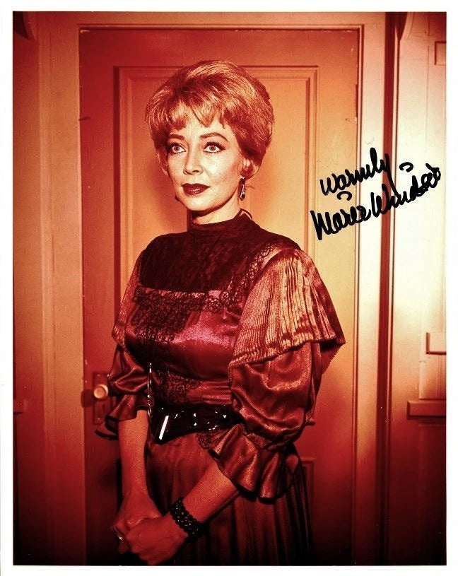 Pretty 8x10-inch color portrait in her prime, boldly signed in black felt-tip marker in her later years. In good condition. After studying acting under Maria Ouspenskaya, Marie Windsor played bits on radio and in feature films until landing the role of Helen Amboy in Song of the Thin Man (1947). She thereafter went on to star in a long string of B-level westerns, noirs, and thrillers, playing dance hall queens, gun molls, floozies, and exotic villainesses. She was unforgettable as Elisha Cook's cold-blooded, castrating wife in Stanley Kubrick's The Killing (1956), as well as in Force of Evil (1948), The Narrow Margin (1952), The Sniper (1952), The Tall Texan (1953), The City That Never Sleeps (1953), Hell's Half Acre (1954), and The Girl in Black Stockings (1957). Her numerous contributions to the horror, sci-fi and fantasy genres included The Jungle (1952), Cat-Women on the Moon (1953), Abbott and Costello Meet the Mummy (1955), Swamp Women (1956), The Story of Mankind (1957), The Day Mars Invaded Earth (1963), T.V.'s "Batman" (1966), Chamber of Horrors (1966), Freaky Friday (1976), 'Salem's Lot (1979), The Perfect Woman (1981), and J.O.E. and the Colonel (1985).